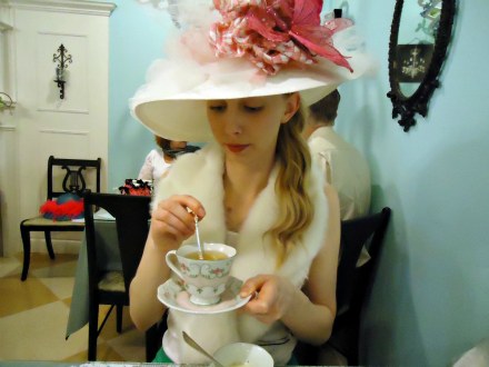 hat, wear a pretty dress and sip peach melba tea from a teensy teacup, this establishment is the perfect place for such a droll distraction. Located in