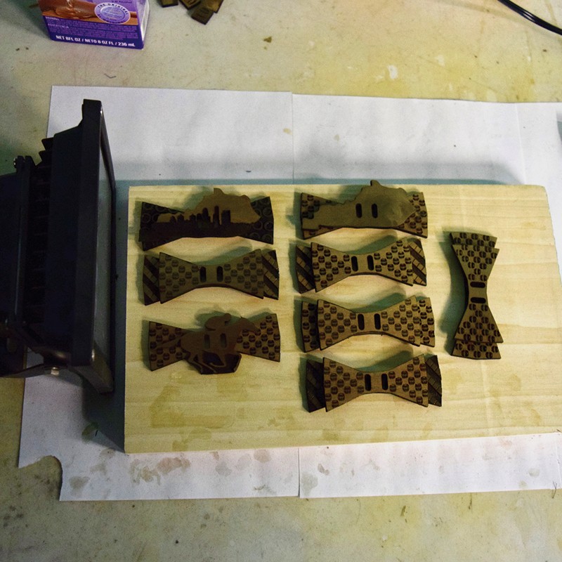 Hackbarth works at StoryWood Bowties, the company founded in 2016 by Ali Muhammad, who’s in his mid-20s. StoryWood produces and sells bow ties, cufflinks, pocket squares and belt buckles made from salvaged wood, including spindles from Churchill Downs (the result of a 2011 remodel), a wooden roof shingle from John Wayne’s birthplace in Iowa and a small piece from DuBois School in Mount Sterling, the last school in Kentucky to integrate.