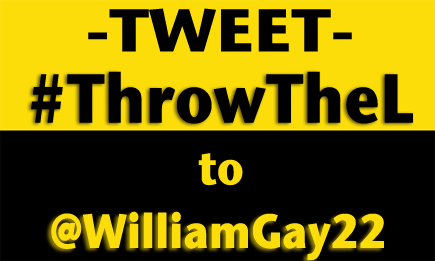 - If you're on Twitter, tweet the hash-tag #ThrowTheL to @WilliamGay22 or just tweet it out to all your followers.