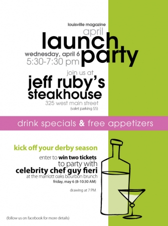 Kick off your Derby season with free appetizers and drink specials. Enter to win two tickets to party with celebrity chef Guy Fieri at the Marriott Oaks Bourbon Brunch on Friday May 6. (Drawing at 7:00pm)