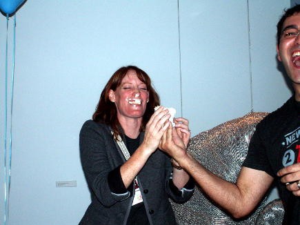 Sunday evening, New2Lou celebrated their third year of bringing new residents and the city together, throwing a birthday bash at 21c Museum Hotel on Seventh and Main. The first 25 attendees received goodie bags from Bourbon Country filled with items from the bourbon promoters as well as Louisville Magazine – whose November 2012 issue had a mini-profile on New2Lou co-founder Stacey Servo – and Greater Louisville, Inc. among others. Sponsors Cake Flour, Kentucky Center for the Performing Arts and Why Wait had prizes for those in attendance through a series of drawings held every half-hour, ranging from gift cards to Puccini’s to an Android tablet by MID.