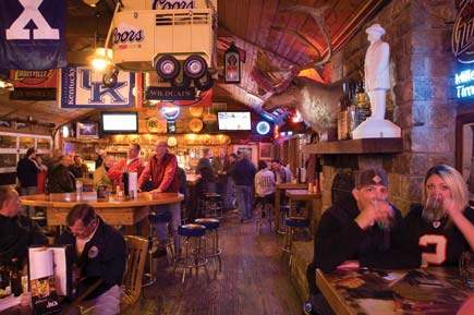 For lack of a better word, Joe’s is a drinking compound with different nooks where you can post up for the game. Near a fireplace, customers sit on plush couches and chairs and watch sports on a large, flat-screen television. The light-colored wood everywhere the eye can see emits a lodge-like vibe, so much so that you half expect a bundled-up local from Lyndon to stomp through the front door in ski boots. Outside, beneath a red-and-white striped tent, heaters make cornhole tournaments a winter-weather activity.