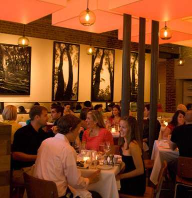 When you need a break from your neighborhood bar-and-grill, put on your little black dress (or its male equivalent) and head to the bar at Proof on Main (702 W. Main St.). There’s nothing dark or seedy about this spot, although the bronze statue that resembles Satan holding a forbidden apple evokes a spirit of playful sin. During happy hour, huge windows let plenty of natural light pour in. Pop-art paintings hang on white walls. Shiny plastic animal heads peer at you from the ceiling. Soft music plays, but the steady hum of conversations and clinking glasses are the main sounds. Business casual professionals gather to sip martinis and talk shop. Later in the evening, dimmed lights cast a soft glow over the fashionable crowd.