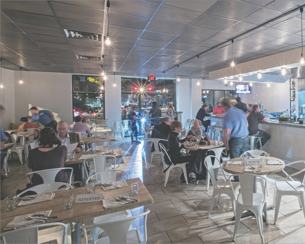 On the corner of Bardstown Road and Grinstead Drive, Fontleroy’s is appropriately named after James Fontleroy Grinstead, who was mayor in the early 1900s. The space formerly housed an Uncle Maddio’s fast-casual pizza franchise and, before that, was home to John Riley Auto Service, which had been on the block for 44 years. As an homage to the garage, the napkins are shop rags and the servers wear blue short-sleeve shop shirts with their names embroidered on the chest. Retro metal cafe chairs and white subway tiles amplify the chatter at the 12 or so tables.