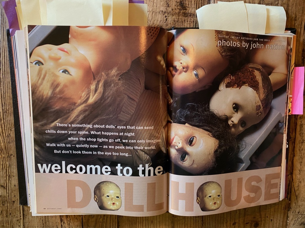 I was originally going to include something inspirational from the March 1999 Louisville Magazine cover story in which Tori Murden, now Spalding University’s president, recounted her isolating voyage rowing solo across the Atlantic Ocean. But I’ll save that for next week because in the October 1999 issue I found these apocalyptic John Nation photos of “dolls’ eyes that can send chills down your spine.” He took some of the photos at a Bardstown Road store called the Doll Collection (RIP). Re the last page: Not sure how long she’d been socially distancing.