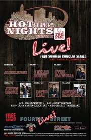 All Hot Country Nights concerts are FREE and open to all ages. On concert nights, patrons under 18 years of age must be accompanied by a legal guardian until 9 PM. After 9 PM, only 21 and over will be admitted. Hot Country Nights runs Friday nights, June 3 through August 26, only at Fourth Street Live!