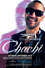 Moodswing 360 Saturdays at Hotel Nightclub presents DJ Chachi on Saturday, September 24! Receive a complimentary bottle of Moet Imperial Champagne - must be pre-booked and arrive before midnight to receive this offer. For VIP reservations, contact Daniel@Hotel-Kentucky.com.
