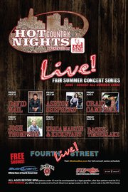All Hot Country Nights concerts are FREE and open to all ages. On concert nights, patrons under 18 years of age must be accompanied by a legal guardian until 9 PM. After 9 PM, only 21 and over will be admitted. Hot Country Nights runs Friday nights, June 3 through August 26, only at Fourth Street Live!