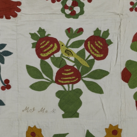 This exhibition will use over thirty outstanding quilts to explore the visual arc of American quilting from the 1830s through the 1940s. Kentucky-made quilts, the core of the Bingham-Miller Family Collection, will receive special attention. Kentucky highlights range from a vibrant, star-patterned quilt in red and blue made in 1832 by Hannah Huxley of Covington to a 1940s example inspired by Native American blankets from the Southwest. Quilts from Kentucky and Beyond:The Bingham-Miller Family Collection presents outstanding quilts from surrounding states, including a circa 1859 album quilt from Illinois in which various quilters contributed boldly patterned squares of flowers and foliage. The distinctive quilting traditions of Pennsylvania and Ohio’s Amish and Mennonite communities will add another aesthetic and cultural dimension to this extraordinary exhibition.
