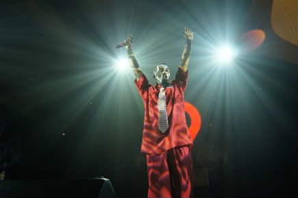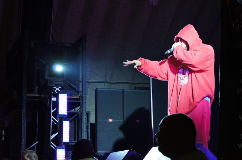 However grueling it may sound, the slew of opening acts didn’t faze the patience of Tech N9ne fans. He entered the stage through an automatic door built within the giant red 9 that stood behind him, wearing matching Strange Music jumpsuits with the 816 Boys who are known for accompanying him on the single “Areola.” I definitely had the female advantage as Tech gave my camera extreme eye contact and followed my movement in front of the stage. The set was a chopped mix of old and new material, busting out with the first verse of “Worldwide Choppers” as he warmed up the crowd. There was no avoiding that some incarnation of “Midwest Choppers” would make an appearance (which has become a Technition anthem), but they only went as far to throw down part II in its entirety. “Psycho Bitch” was interrupted with “Psycho Bitch II,” and “Red Nose” was performed humbly by Tech sitting down. “Come Gangsta” also brought forth the unifying pride that this fan base shares. Of course, any fan could tell you what Tech N9ne’s favorite drink is; so when it was time to sing the ingredients in “Caribou Lou,” nobody had to tell the bar twice. On perfect timing, a pale yellow mixed drink was passed up to the stage once the song had concluded. Eventually it broke down to a mad-lib test of who Tech N9ne’s real fans were as he recited random lyrics from older songs like “Dysfunctional” to “Low” and allowed the crowd to fill in the blanks.