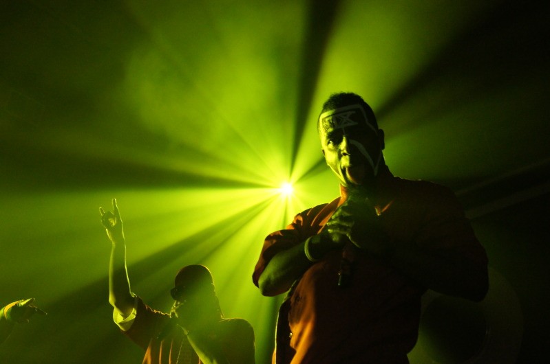 Tech N9ne rolled through Louisville last night with a large crew of fellow rappers to support his headlining tour, but they reassured us this was a party and not merely a performance. Stevie Stone initiated the night’s baller vibe, layin’ out the crunk…and yelling. The following act Mayday! succeeded at appeasing both rock and hip-hop lovers with their Beastie Boys delivery and ska/punk style, though it did border dangerously along Limp Bizkit territory.
